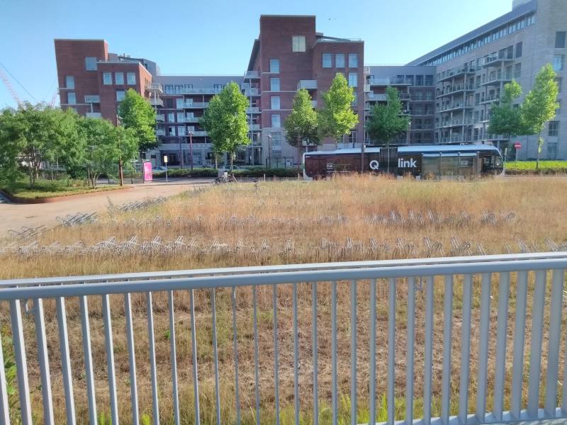 Wat dan wel weer jammer is, is dat iets wat een onbewaakte fietsenstalling moet voorstellen volledig begroeid is.